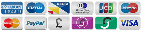 A: We accept cash, cheque or for a tiny charge we also accept card payments from all major cards.